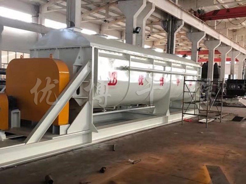 油田污泥槳葉干燥機主要由引風機、打散裝置、帶式上料機、進料機、回轉(zhuǎn)滾筒、熱源、帶式出料機、卸料器和配電柜構(gòu)成。因此污泥烘干機的工作區(qū)包括出料區(qū)、傾斜揚料板區(qū)、清理區(qū)、導(dǎo)料區(qū)構(gòu)成。